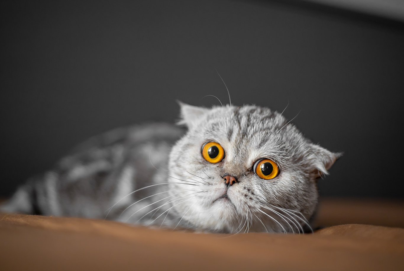 The distinguishing feature of scottish fold cats are, of course, the folds in their ears. Although it is worth mentioning that there are some cases of scottish fold cats with straight ears. Scottish fold cats are medium in size, with a sturdy body and round head. They have big and wide open eyes that should correspond with the colour of the fur. Scottish fold cats have quite short legs, medium in length tail that is thick at the base. Their fur is dense and springy and can come in a vast variety of colours excluding: lilac, chocolate and typical for siamese cats colourpoint.