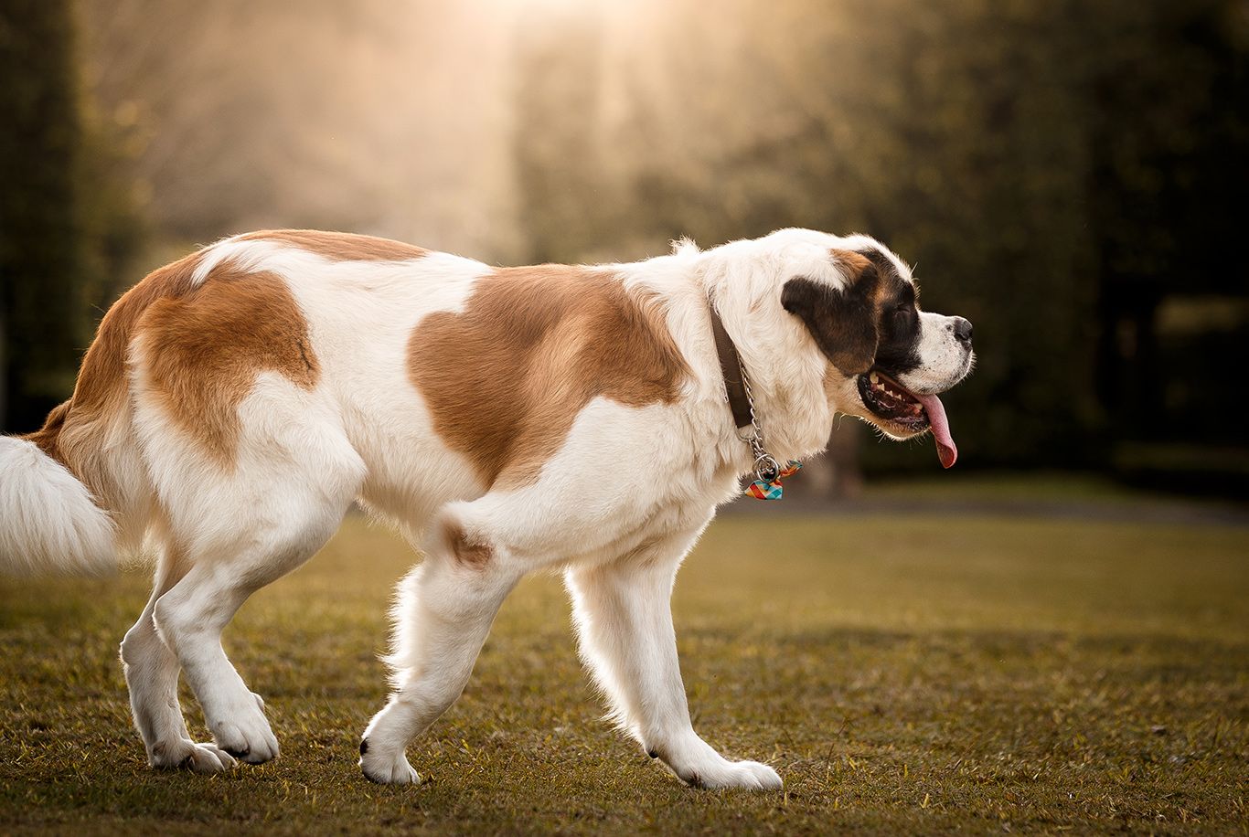 St. Bernard is a large dog breed from the Molossian mountain dog breeds group. Originally bred as a rescue dog, currently, adult dogs of this breed are too heavy to work in this field. St. Bernard dogs are considered one of the heaviest dog breeds.