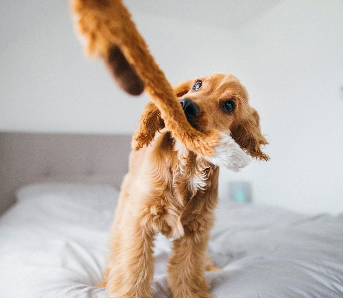As the weather is getting worse, temperatures are dropping and the day becomes shorter, playing outside with your dogs become more and more unpleasant. During autumn and winter, it’s easy to shorten your daily walks and omit playtime in the forest or at a park. Despite the bad weather, the energy levels of our canine friends stay the same as in the spring or summer. Dogs stripped of their usual amount of physical activity can quickly become frustrated that can even lead to destructive behaviours around the house. How to organise playtime for your dog at home?